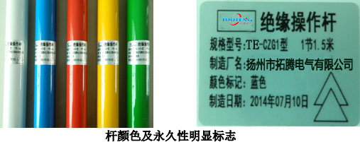 5.制造絕緣操作桿的桿材試品在進(jìn)行過(guò)4000次彎曲循環(huán)后,不借助放大裝置而用目測(cè)檢查時(shí),試品應(yīng)無(wú)任何損傷的痕跡,也不應(yīng)有任何永久變形。在經(jīng)過(guò)4000次彎曲循環(huán)試驗(yàn)后,這批試品應(yīng)還能通過(guò)受潮前后的絕緣試驗(yàn)。 四、其它要求 1、絕緣桿用防潮的塑料袋或其它防潮材料包裝,產(chǎn)品與產(chǎn)品之間應(yīng)墊紙,整個(gè)包裝應(yīng)牢固,包裝袋表面有明顯的“防潮”、“防雨”、“嚴(yán)防碰撞”等字樣。 2、包裝箱有如下標(biāo)志:制造廠名,絕緣桿的數(shù)量和重量,出廠試驗(yàn)的合格證;出廠日期。 五、使用說(shuō)明與定期試驗(yàn):