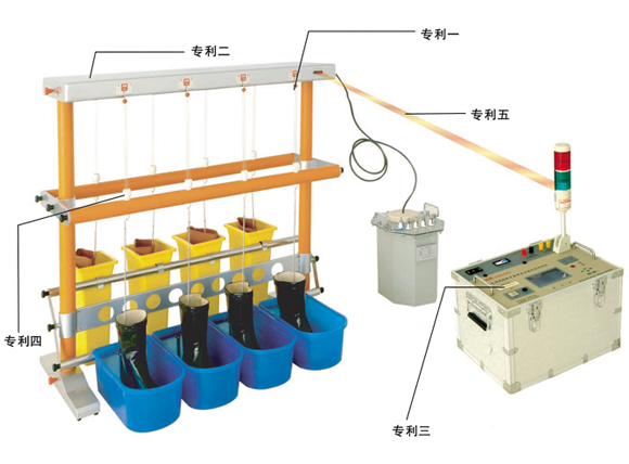 產(chǎn)品介紹 絕緣靴和絕緣手套是電力系統(tǒng)操作和檢修必備的安全防護(hù)用具,DL408《電業(yè)安全工作規(guī)程》及GB12011-2000《電絕緣鞋通用技術(shù)條件》規(guī)定了絕緣靴及絕緣手套等常用安全工器具的試驗(yàn)方法和周期。絕緣靴及絕緣手套耐壓試驗(yàn),周期為半年,試驗(yàn)過(guò)程中不允許擊穿,同時(shí)絕緣靴泄漏電流不大于限定值。 儀器采用多路高壓泄流測(cè)量專利技術(shù)和紅外數(shù)據(jù)通訊技術(shù),實(shí)現(xiàn)了安全測(cè)量高壓泄漏電流的目的。通過(guò)本技術(shù)的應(yīng)用,儀器與高壓系統(tǒng)完全隔離,不僅可以精確測(cè)量多路高壓泄漏電流,而且確保了試驗(yàn)人員的人身安全。 為了提高工作效率,一次可以同時(shí)進(jìn)行8只試品的試驗(yàn),為避免重復(fù)試驗(yàn),采用高壓分?jǐn)鄬@夹g(shù),試驗(yàn)過(guò)程中可以將擊穿的試品脫離高壓試驗(yàn)系統(tǒng),沒(méi)有擊穿的試品繼續(xù)試驗(yàn)直到完成試驗(yàn)。 儀器主要功能 同時(shí)進(jìn)行8只絕緣靴或絕緣手套的試驗(yàn),分別測(cè)量泄漏電流,擴(kuò)展型可進(jìn)行16只試品的測(cè)試。 顯示信息量大,同時(shí)顯示8路高壓泄漏電流、試驗(yàn)電壓、電流、計(jì)時(shí)時(shí)間等參數(shù)。 可測(cè)量試驗(yàn)電壓、試驗(yàn)變壓器一次電流等參數(shù)。 采用紅外通訊專利技術(shù),使操作臺(tái)與高壓系統(tǒng)徹底隔離,確保試驗(yàn)人員安全。 全自動(dòng)進(jìn)行耐壓試驗(yàn)。試驗(yàn)開(kāi)始后,儀器自動(dòng)合閘以國(guó)標(biāo)要求升壓速度自動(dòng)升壓,升至預(yù)定電壓開(kāi)始計(jì)時(shí)并保持試驗(yàn)電壓,時(shí)間到自動(dòng)降壓并斷電,同時(shí)顯示并保存試驗(yàn)結(jié)果。 具有專用接地容器,便于操作。 每路試品均具備高壓分?jǐn)鄼C(jī)構(gòu),當(dāng)任意一路擊穿時(shí),該路試品將自動(dòng)脫離高壓,不影響試驗(yàn)的進(jìn)行。 具有過(guò)壓、過(guò)流保護(hù)功能。 具有高壓危險(xiǎn)警示燈顯示。 可以選配絕緣桿支架,以進(jìn)行絕緣桿耐壓試驗(yàn)。 五項(xiàng)專利技術(shù): 高壓分?jǐn)鄼C(jī)構(gòu) 多路泄漏電流測(cè)量系統(tǒng) 無(wú)紙化辦公系統(tǒng) 快速分?jǐn)嘌b置 紅外數(shù)據(jù)通訊技術(shù) 三大特點(diǎn): 安全性:高電壓與控制臺(tái)完全隔離 準(zhǔn)確性:多路泄流分別測(cè)量、紅外傳輸 高效性:擊穿或超過(guò)泄流限值試品,自動(dòng)脫離高壓,其它試品繼續(xù)試驗(yàn)。