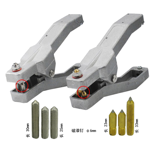 靜電夾是能用以導(dǎo)出器械上靜電的工具。通常與金屬接地樁(接地銅排)或接地網(wǎng)相連,夾體通過(guò)恒力彈簧夾持在需導(dǎo)靜電物體上,并通過(guò)尖銳的破漆、透銹頂針穿透物體表層的油漆、污漬等絕緣層,使得物體上積聚的靜電能被實(shí)時(shí)導(dǎo)走,作業(yè)。靜電夾一般配備直線或彈簧電纜使用。 在廣泛的石油化工、醫(yī)藥、試劑、油漆、涂料等工業(yè)生產(chǎn)中,易燃、易爆品的盛裝、倉(cāng)儲(chǔ)、轉(zhuǎn)運(yùn)、攪拌、取用過(guò)程,料斗料桶、物料架、槽車、混料機(jī)、移動(dòng)容器等器械需要全程、、便捷接地,以因靜電誘發(fā)的引燃、引爆風(fēng)險(xiǎn)。