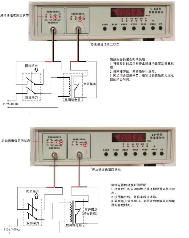 啟動端控制需要加一個雙擲閘刀,一刀控制繼電器線圈,另一刀接毫秒計,選第三個燈亮狀態(tài)。 交流不用電位控制,按下圖加雙擲閘刀,用空節(jié)點(第三個狀態(tài))即可。由于雙擲閘刀的閉合是同步的,所以繼電器線圈通電的同時,毫秒計就開始計時。繼電器的觸點閉合時,停止計時。