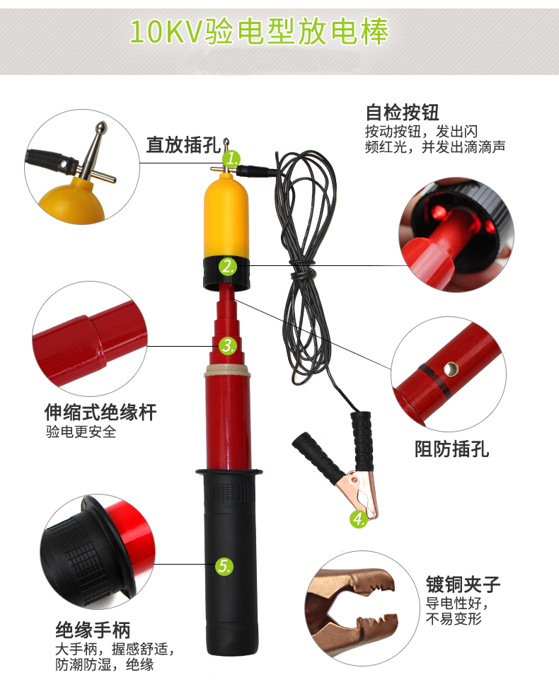 10KV伸縮式聲光高壓驗電型放電棒直流交流 驗電器測試筆 阻直兩用
