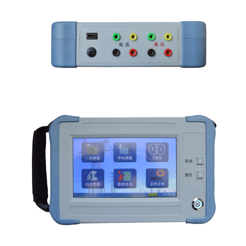 采用 7 寸高清彩色觸屏液晶,具備三相,單相 ,7 秒鐘完成三相測(cè)試,特別適用于 Z 型變、整流變、電爐變、非整點(diǎn)的移相變測(cè)量,具有組別測(cè)試及相位角功能,中英文切換,U 盤數(shù)據(jù)存儲(chǔ)功能,內(nèi)置大容量鋰電池,范圍:0.9-10000,可選配藍(lán)牙打印機(jī)