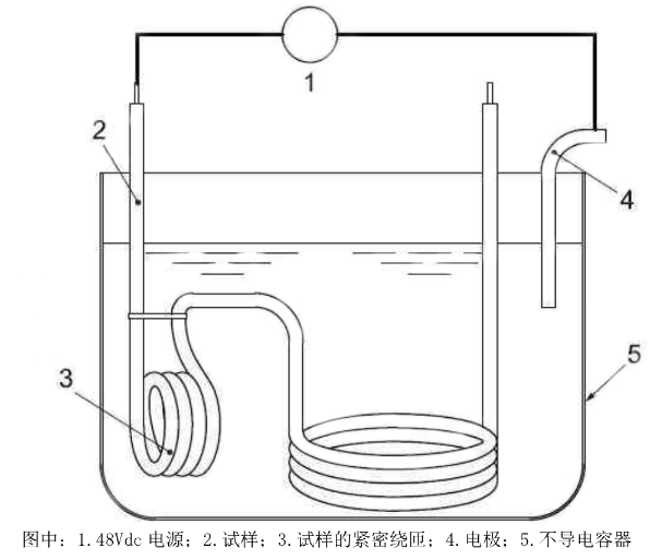 使用第二個試樣重復整個試驗程序,但用48 V直流電源顛倒電極供電。