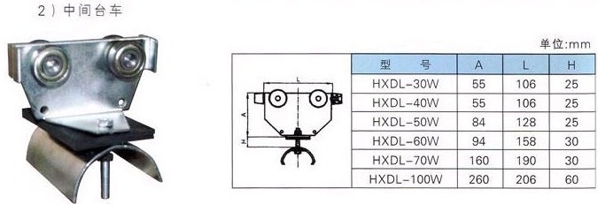 中間攜纜臺車其行走輪也是全封閉軸承,壓夾電纜部分采用弧形軟橡膠墊層,使電纜不易損壞。首車和中間攜纜臺車均有防撞緩沖器,保證臺車不受起動和停止時撞擊。