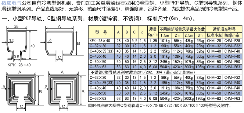 軌道采用冷軋鋼板一次冷拉成型,以確保軌道截面尺寸的精度,取代了角鋼及其它導(dǎo)電方式的不安全,重量大,室內(nèi)滑線積灰,室外結(jié)冰造成線路短路,影響使用的缺點(diǎn),軌道單位長(zhǎng)度4~6m采用耦合器連接頭,可依需擴(kuò)展到任意長(zhǎng)度。