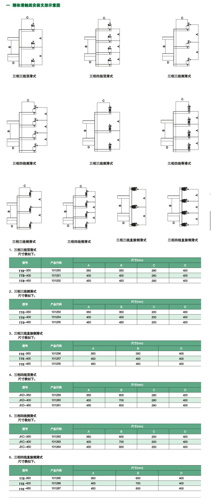 1.三相三線頂滑式 2.三相三線側(cè)滑式 3.三相三線直接側(cè)滑式 4.三相四線頂滑式 5.三相四線側(cè)滑式 6.三相四線直接側(cè)滑式