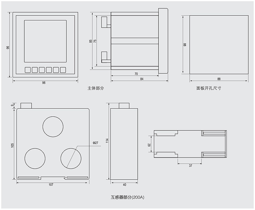 ▲變送器功能強大:內(nèi)置4~20mA模擬量輸出,可選多種電量(電流、電壓、功率、電能),且范圍可調(diào)。