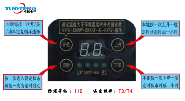 產(chǎn)品用途:本產(chǎn)品適用于易燃易爆混合物環(huán)境,作室內(nèi)空氣調(diào)節(jié)之用。本產(chǎn)品接上電源即可使用,微電腦控制,數(shù)碼顯示,溫度可設(shè)定,功率可調(diào)節(jié),運行狀態(tài)、環(huán)境溫度、暖流溫度、定時時間等一目了然,具有開機防冷風(fēng),關(guān)機吹余熱,過溫自保護功能。多機可以組網(wǎng)集中控制。