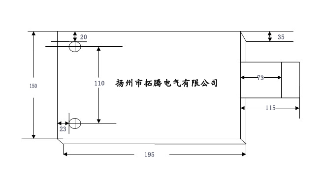 尺寸:195*150*35mm 板到防爆出線口115(接線盒直徑65mm) 長邊孔距20 寬邊孔23中心孔距110