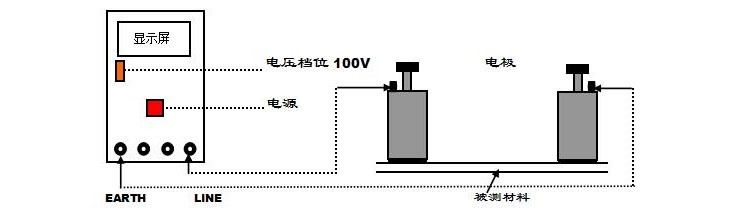 ◎第二步:剝?nèi)ル姌O底部導(dǎo)電膜的黃色保護層,放在被測材料上(保持30cm左右距離),將測試線分別與電極連接;