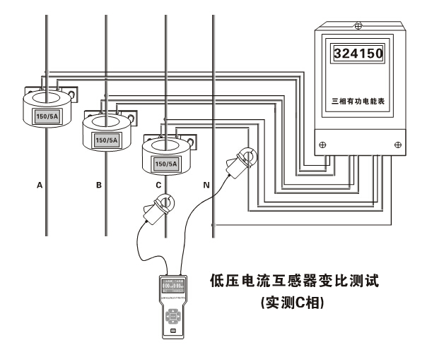 在線測試380V/220V配電系統(tǒng)中電流互感器、變壓器一二次回路的漏電流、電流變比、比差、角差、相別、極性。