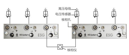 兩個(gè)同頻率的信號(hào),個(gè)信號(hào)的過零點(diǎn),與第二個(gè)信號(hào)的過零點(diǎn)之間的距離,可用相位角度做單位,也可用時(shí)間做單位,來比較相位差。相位比較之前,首先要確保壓開關(guān)柜內(nèi)部配線正確,即裝配的電壓傳感器與電壓指示器 之間的連接導(dǎo)線的相序要正確.當(dāng)兩個(gè)壓電源正常供電,在確認(rèn)各電源開關(guān)柜上面的電壓 指示器正常指示后,再進(jìn)行其他操作:先將比較器一端的插頭,插入運(yùn)行電源開關(guān)柜上面的電壓指示器面板L1相位測(cè)試端,然后把比較器另一端的插頭,分別插入待定電源開關(guān)上面電壓指示器面板上的L1、 L2、 L3相位測(cè)試端,觀察核相器指示燈發(fā)光情況。